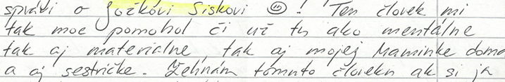 Znenie listu: „Teší ma aj to, že chalani, ktorí sa mi smiali, že sa za nich modlím, po 2-3 mesiacoch prišli za mnou a s pokorou ma prosili, aby som ich naučil modliť sa alebo dal im čítať Bibliu či knihy s náboženskou