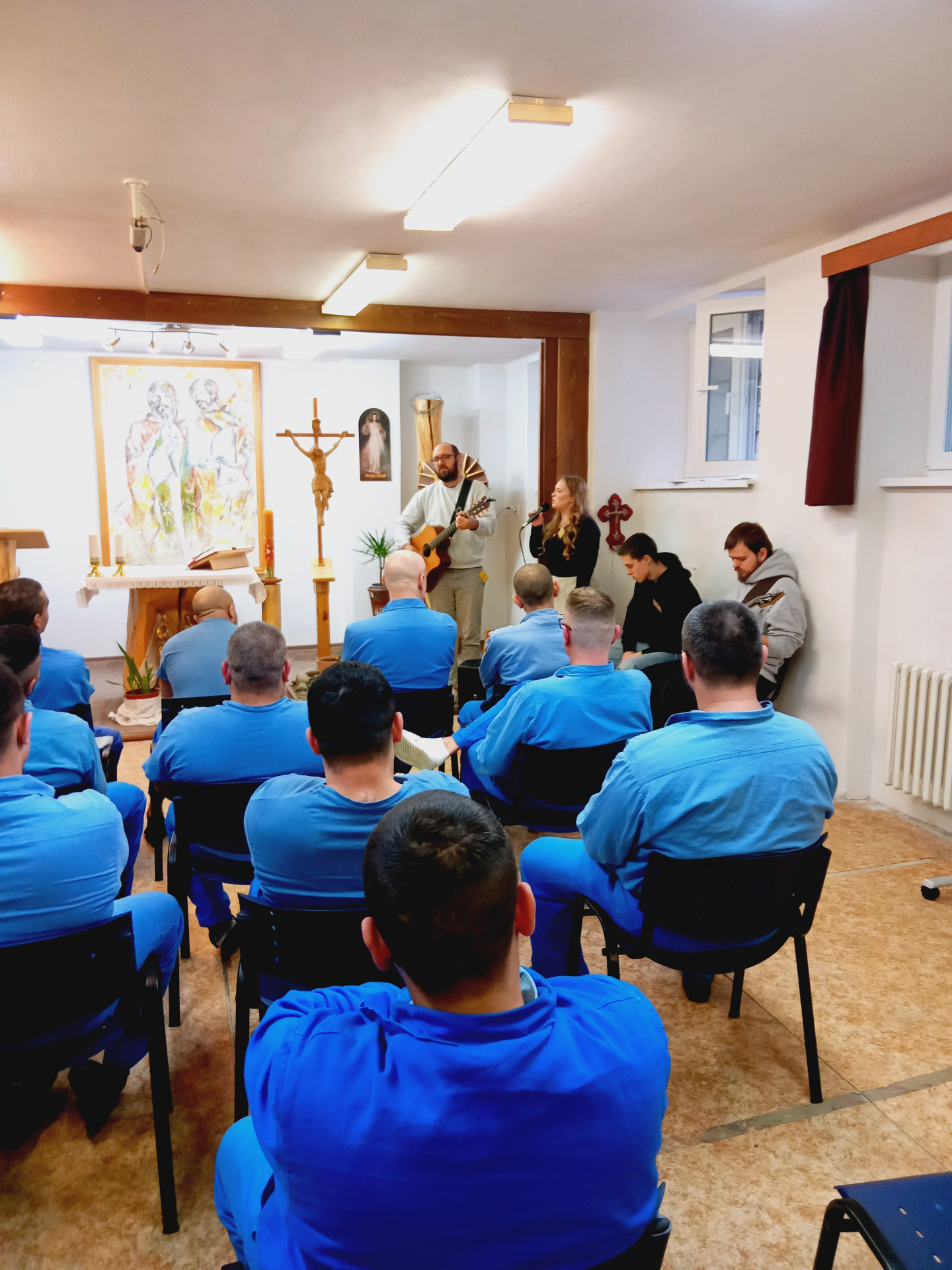 Slávenie svätej omše na 5. nedeľu v cezročnom období vo väznici v Ružomberku bolo obohatené o hudobný sprievod kapely Leopoldovské múry, pôsobiacej v rámci spoločenstva Dismas. V duchu myšlienky, ktorú vo svojej kázni zdôraznil kaplán Marek Olčák, že kresťania sú povolaní byť „soľou zeme“, chceme aj týmto spôsobom povzbudiť odsúdených k živej a aktívnej účasti na slávení svätej omše, najmä prostredníctvom spevu a zapájania sa do hudobného sprievodu liturgie.