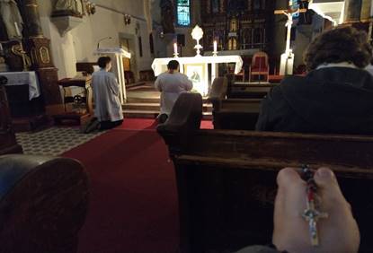 Foto: práve v spomínanom kostole Sv. Michala archanjela, kde sú každý deň otvorené dvere za účelom sviatosti zmierenia ako aj zasvätenia, pri sviatosti oltárnej pri obraze Mamičky Panny Márii Trnavskej ako aj prijatie Eucharistie. Vďaka ti Ocko za takéhoto kňaza.