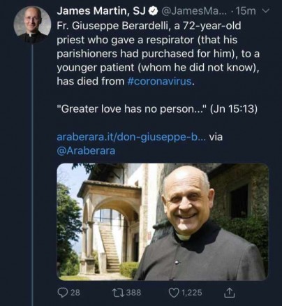 Teraz by som ti ukázal Božie slovo, ktoré som si za týždeň vytiahol 3krát: 22.3., 26.3. a 28.3.. *Amos 4,4 az 5,17. *Mt25,36 Božie slovo v praxi: ,,Ochoreniu COVID-19 podľahol v Taliansku aj 72-ročný kňaz Giuseppe Berardelli, ktorý v nemocnici daroval svoj respirátor mladšiemu pacientovi nakazenému koronavírusom. Informovala o tom BBC. Je jedným spomedzi najmenej 67 kňazov, ktorí ochoreniu COVID-19 v Taliansku podľahli. Zomrel v nemocnici v mestečku Lovere v provincii Bergamo na severe Talianska. Vedenie nemocnice, kde bol hospitalizovaný, uviedlo, že respirátor, ktorý mu priniesli jeho farníci, odmietol používať a prenechal ho mladšiemu pacientovi.“ K tomuto príbehu mám v srdci len *Jn15,13 „Nik nemá väčšiu lásku ako ten, kto položí život za svojich priateľov.“ Amen.