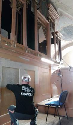 Jednalo sa o kompletnú úpravu orgána (viď foto), kde je potrebné odstrániť všetku maľovku, ktorá je tam nanesená. Bol som informovaný, že je tam zhruba 5 vrstiev maľovky a že to nebude jednoduché. Bude tam potrebné veľa trpezlivosti. A práve toto bolo to, kde ma Pán chcel mať – priamo pri sebe. Samozrejme, že túto ponuku som prijal, nech by ma to stálo čokoľvek, nakoľko som to vnímal ako posolstvo od Pána. Toto je cesta, pre ktorú som sa rozhodol už vo VTOS a Pán mi dal znamenie, aby som v tom pokračoval. Lebo všetko má svoj dôvod a zmysel, ale hlavne je to cesta. A cesta je život. Pri práci používam chirurgický skalpel, špachtľu rôzneho druhu a malú zaostrenú lyžičku z chirurgickej ocele. Po pár dňoch môžem zhodnotiť, že som sa rozhodol správne. Je to miesto, kde sa cítim veľmi dobre, mám neopísateľný pokoj v duši, môžem sa kedykoľvek modliť a to priamo v dome môjho Pána, počúvať v pokoji Božie slovo a to všetko pri práci. Takto to Pán zariadil a takto to všetko nasmeroval a ja som vďačný, že som práve tam, kde som. Chvála Pánovi, lebo jeho milosrdenstvo trvá naveky. Záverom chcem pozdraviť všetkých, ktorí toto čítajú, pretože niektorí z Vás ma aj poznajú. Držte sa chlapi, lebo už aj ja viem, že to nie je jednoduché. Modlím sa za Vás a veľakrát sme sa za Vás a za Vaše rodiny modlili aj na východe. Boh Vám všetkým žehnaj.