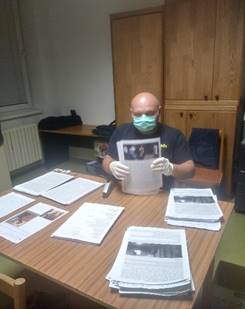 V nasledovnom príspevku ti predstavíme člena Jozefa Zachara, ktorého už poznáš, práve on vytláča každý jeden NL určený pre teba. Vyzerá to možno na prvý pohľad ľahko, ale poviem ti, že len táto činnosť mu trvá zväčša čistého času 12 hodín. Skúsim ti priblížiť ako to funguje. Ja mu pošlem obsah NL do mailu, on si ho otvorí a zmení obsah zvlášť pre mužov, zvlášť pre ženy. Mení tiež obsah a obrázky do Leopoldova, lebo moje fotky tam nemôžu byť, lebo to údajne nie je zlučiteľné s mojím výkonom štátnej služby. Lebo oni ešte nedokážu pochopiť prečo už neberiem teba a ostatných členov ako hoviezí. Áno, priznávam dlhé roky som mal tento názor, ale teraz každý deň prosím Ocka, aby som ťa videl jeho očami. A prezradím ti to, ak to nevieš On ťa miluje. Foto: práve pri dokončovaní a spájaní NL, ktoré idú skoro do všetkých väzníc v Čechách a na Slovensku. Aj takouto formou chcem Jožkovi Zacharovi poďakovať za jeho otvorené srdce práve pre teba a naše spoloč., lebo za deň priemerne pracuje tak 2-3 hod. pre spol. Dismas. Klobúk dole.