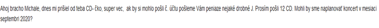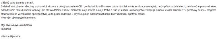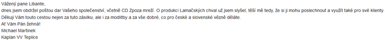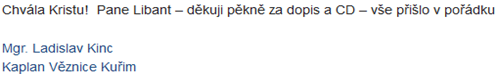 Foto: časť mailu od kaplána z Věznice Jiřice, kde sme mu na jeho žiadosť poslali ešte ďalších 12 kusov CD.