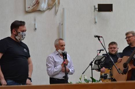 Foto: Trenčín Juh, kostol svätej rodiny a 5 výročie spol. DISMAS, pri živom nakrúcaní (live stream), kde vystúpil so svojím svedectvom Štefan Frívaldský (v košeli), ktorý ti aj píše: ,,V sobotu ako viete všetci bratia s milosťou Pánovou spoločenstvo DISMAS oslavovalo piate výročie od svojho vzniku. Mal som možnosť aj ja svojím svedectvom prispieť a povedať že vo sv. písme treba hľadať odpoveď na vznik spoločenstva, „tam kde sa rozmnožil hriech, o to viac sa rozmnožili Božia milosť“. A prečo práve v LEOPOLDOVE? Tam toho hriechu, krivdy, bolesti a utrpenia bolo neúrekom. To čo sa dialo kňazom v 50 tich rokoch sa nedialo hádam na žiadnom mieste a na kostiach týchto mučeníkov vzniklo spoločenstvo. To, že vytrvalo a teraz už 5 rokov aj tu môžeme nájsť odpoveď vo sv.pisme. ,,Kto by tento chrám zničil, toho Boh zničí" a my, každý jeden, sme chrámom Ducha svätého. Hovoril som aj o tom, ako som začal cítiť, keď spoločenstvo rástlo aj silu modlitby DISMASU. Dostalo sa mne osobne toľko milosti v LEOPOLDOVE a aj teraz naďalej ma Pán obdarúva obrovským množstvom milosrdenstva. JEMU - Bohu milému a svätému za toto všetko patrí chvála AMEN. Teraz opíšem svedectvo, ktoré sa stalo v roku 2016 v období po Veľkej Noci. Na jednom biblickom stretnutí bola nám viacerým ponúknutá 9 dňová modlitba Novény k sv. Terezke Ježiškovej. Zobral som si ju vtedy s tým, že snáď sa ju budem modliť. Novéna bola s prosbou o milosť udelenia darov Ducha svätého. Na konci novény na znak udelenia milostí mal prosiaci dostať ako znamenie nejakým spôsobom ružu. Modlil som sa spomínanú novénu, ale posledný deň dopoludnia som pri športe padol a ublížil som si na ľavé zápästie. Toto zápästie som mal pred viacerými rokmi dokonca zlomené. Bolesti sa stupňovali a ruka už dosť hodne opuchala, poobede so mnou išla mimoriadna eskorta na vyšetrenie, pretože som prstami nedokázal vôbec hýbať. Po rtg lekár skonštatoval-prasknuté zápästie. Ruku mi obviazali obyčajným obväzom, nič viac, sádra sa nedáva… . Navečer sa bolesti ešte vystupňovali, bol posledný deň, kedy som sa mal domodliť už spomínanú novénu. S ťažkosťami som si vyložil ruku vyššie, aby krv tak do nej neprúdila. Vo chvíli, keď som sa domodlil a povedal „Amen“, obväz, ktorým som mal zápästie obviazané sa zošuchol. Po chvíľke som pocítil celkové uvoľnenie a uvedomil som si, že ruka ma prestala bolieť. V tej chvíli prišiel do izby kolega, hovorím mu: „Dušan podaj mi ruku“. Stlačil som mu jeho ruku najskôr mojou pravou a celou silou, potom ľavou ubolenou a tiež celou silou. „To čo?“ pýta sa ma. Ja neviem Dušan, ale v zápätí som dodal: ,,Ja viem“ Novéna a prosba k sv. Terezke!“ O tri dni som robil kliky, dokonca na zápästiach. Toto je náš Pán, verný a pravdivý. Braňo Letko v jednej z piesní spieva: „Teba Pane ctím, Tebe len, spievam ALELUJA. Tak aj ja teraz dvíham ruky spoločne s Vami všetkými a spievam spolu aj s Braňom (pretože počúvam opakovane stream, v ktorom Braňo túto pieseň v tejto chvíli spieva) ALELUJA.“