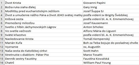 Foto: zoznam odporúčanej literatúry (kníh) Zapamätaj si však, že najlepšia a najdôležitejšia kniha je sväté písmo – Biblia.