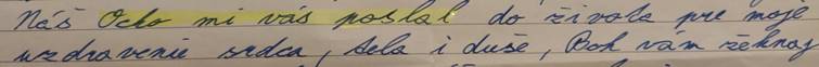 Foto: Jožkov list, ktorý nás hreje pri srdci a ťahá nás vpred napriek únave. Vpred pracovať na Ockovej vinici. V liste píše, že mu otvára srdce a že Pán je prítomný. Jožko je sám na cele lebo je doživotný, ale ako by sme tam boli dvaja.