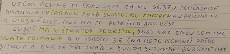 Foto: list od Petra z Ilavy. List, ktorý nás povzbudil a utvrdil, že slúžiť Vám (Kristovi) je česť a že je medzi nami stále.