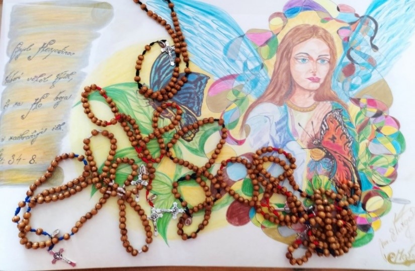 Fotka: ružence vlastno ručne vyrobené na doživotných trestoch v BB, pričom obrázok pod vyrobenými ružencami určený od doživotne odsúdeného pre chlapčeka Matúška, ktorý spolupracoval na projekte Anjelsky list a na štedrý deň poslal práve tomuto odsúdenému krásny dopis.