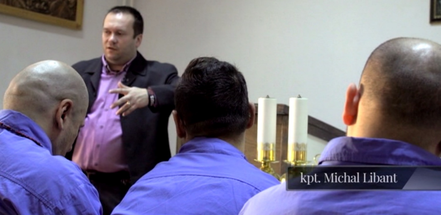 Fotka: biblická škola v kaplnke obrátenia sv. Pavla v Leopoldovskej väznici z filmu Zlaté píšťaly od TV LUX