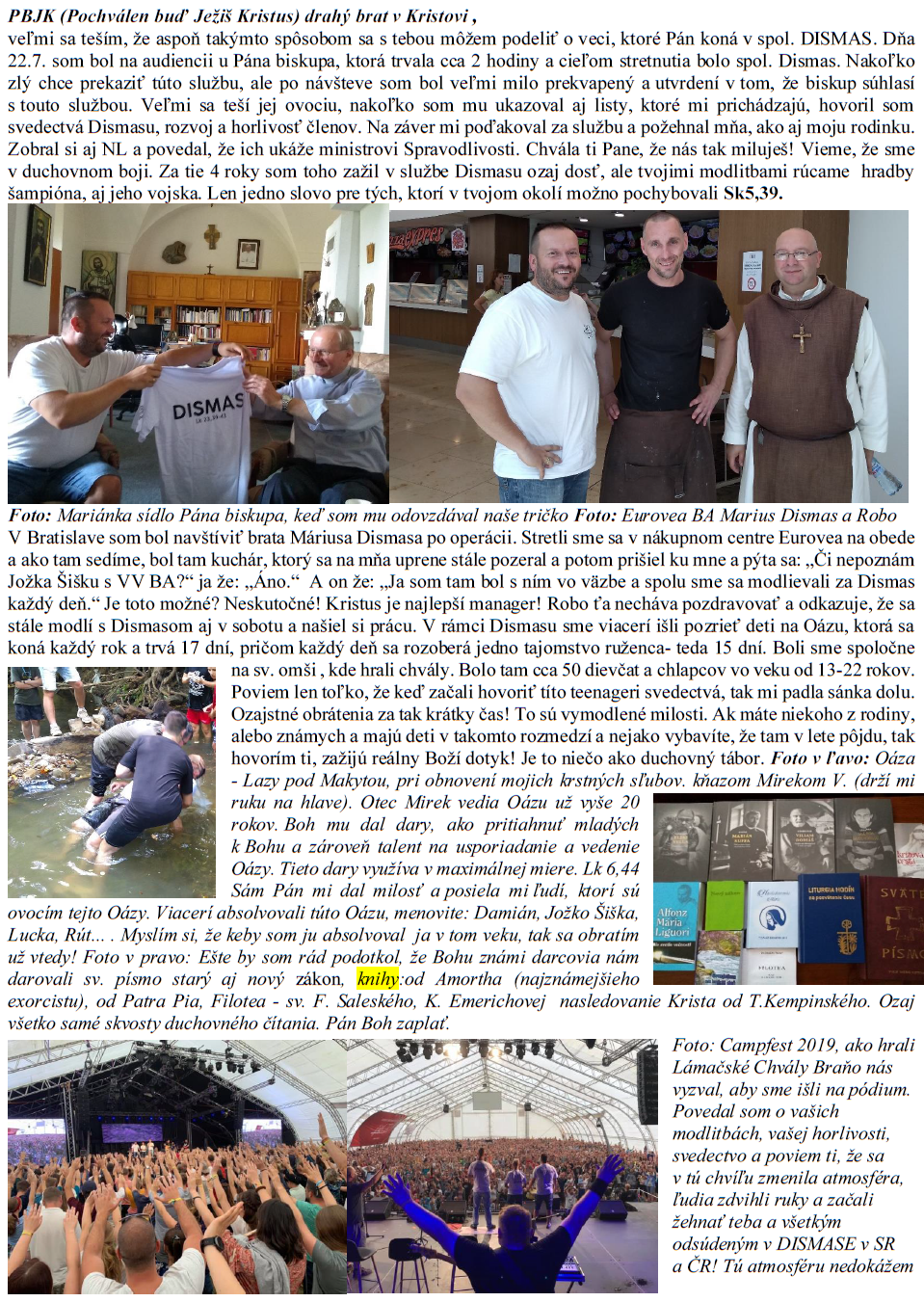 Prichádzajú aj rôzne reakcie z Facebooku, tak poskytnem aspoň jeden z vystúpenia na Campfeste 2019, kde sa spol. Dismas modlilo a žehnalo rodinám počas programu Lámačských Chvál.