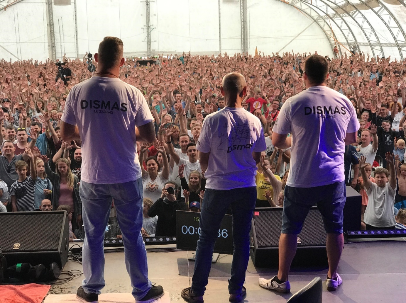 Fotka: z Campfestu 2019, kde všetci ľudia v tomto obrovskom stane žehnajú spol. DISMAS.