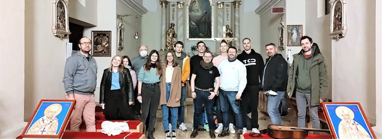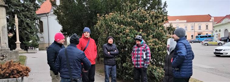 Foto: stretnutie spol. DISMAS zo dňa 19.2. 20222 po sv. omši pri kostole sv. Michala Archanjela v Hlohovci.