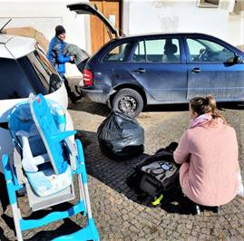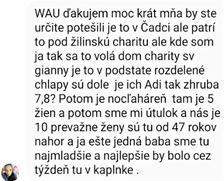 Bol som aj na sv. prijímaní. Ježiša som prijal do úst a po kľačačky. V tomto kostole s tým nebol žiaden problém. Po sv. omši sme išli s Michalom a Mirkou na faru a odtiaľ sme brali veci, ktoré som hneď ukladal do auta. Viezol som štyri vrecia oblečenia, kočík a stoličku pre malé dieťa. K stoličke sa dá pripevniť aj stôl a takto môže malé dieťa aj kŕmiť. Po príchode na určenú adresu hneď sa začali zbiehať ľudia a pýtali sa ma, koho hľadám. Povedal som im, že hľadám jednu pani, ktorá má viac detí a spoločenstvo Dismas poprosila o pomoc. V priebehu pár sekúnd pristúpila ku mne tá pani aj s viacerými deťmi a povedala mi, že je to ona, čo písala Michalovi. Prostredie, kde som sa nachádzal, bolo veľmi skromné a každý hneď vycíti, že tam žijú vo veľmi biednych podmienkach. Hneď som začal vykladať veci. Chcel som to aj odfotiť, ale deti to tak rýchlo poodnášali, že už nezostalo nič na fotenie. Potom som sa rozprával aj s jedným chlapíkom, ktorý sa ma pýtal, aká charita sme. Vysvetlil som mu, že nie sme charita, ale modlitbové spoločenstvo Dismas a túto charitu robí Mirka navyše. On mi rozprával, že by potreboval právnika. Oznámil som mu, že takéto služby spoločenstvo Dismas neposkytuje. Pri odchode som pani povzbudil, aby sa modlila a dal som jej leták - Pompejskú novému. BŤŽ.“ Ako si si všimol, Janka, matka 6 detí a manželka nášho člena, ktorý je zavretý vo väznici v Hrnčiarovciach, nepotrebovala len materiálnu pomoc, ale prosila aj o právnu pomoc. Na to som jej napísal, že to nedokážem vybaviť, lebo takúto službu nemáme a ani nemáme žiadneho právnika. Určite bola smutná, ale pomodlil som sa za to a povedal som Bohu Ockovi, že tebe, Pane, zverujem túto žiadosť o právnickú pomoc, ty sa postaraj.