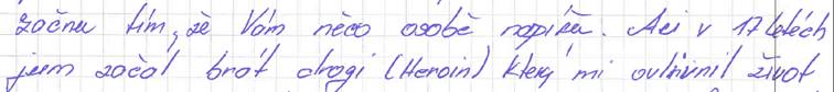 Foto časť listu od Romea z väznice Kuřim a ktorý pokračuje: „když jsem si přečetl stránku po stránce Evangelium, pocitoval jsem sílu, hned jsem děkoval , cituji: „Děkuji Pane Ježíši že jsi se mnou.“ A modlil jsem se vždy 10 x Otče náš! A pochopil jsem, že tento trest a vězení byl osud. Boží osud. P.Ježíš už věděl a měl pro mě plán. Rozpoznal jsem že to tak mělo být. Kdybych se nechtěl zabít a nebyl bych 3 měsíce na samotce, tak bych se nedostal k Pánu Bohu, neobrátil bych se k Němu. Po téměř 3 měsících zoufalství, litování, zlosti na sebe i kolem sebe jsem byl zlej i na družku. Jsem se začal měnit, v tom období byly dlouhé dny bolesti, smutku a samotářské procházky ve věznici. Ocitl jsem se ve vnímatelné Boží přítomnosti s vědomím Jeho nekonečné a naprosto osobní lásky. Pociťoval jsem, že jsem jiný, i družka mi řekla: „Romi, co se děje?“ A já říkám: „Co tím myslíš, nic se neděje!“ A ona mi říká: „Už měsíc nenadáváš, nemáš o mé lásce pochybnosti, jsi milej, nenadáváš mi , začal jsi mě poslouchat a vnímat, nemyslíš sám na sebe!“ A řekl jsem ji: „Lásko, obrátil jsem se k Panu Ježíši a lásko, On fakt je!“ Pokorne jsem se ji omluvil za vše, co jsem řekl a tak, jak je psáno v Evangeliu, když rozdělil majetek svým dvům synům. A po ňákem čase se vrátil syn za otcem. A řekl: „Otče, nejsem hoden se nazývat tvým synem, ale vem mě k sobě jako svého služebníka!“ A on, otec na to: „Přichystejte hostinu, můj syn ožil, byl mrtvy, ale ožil a odpustil mu. A druhý z bratrů to otcovi vytkl. A a řekl mu: „Byl mrtev a ožil“. Lukáš, 15 -11 Tím jsem pochopil, že jsem byl mrtev a ožil jsem . Toto jsem řekl své družce do telefonu, přesněji vězeňské budky. A ona na to: „Pamatuješ doma na balkoně, když ses rouhal a mluvil špatně o Bohu. Řekla jsem ti, vše vidí a slyší a ....a řeklas mi: „Proč máš tolik zla v srdci. Řekla mi: „Tebe svedl sám ďábel.“ A začali mi téct slzy, plakal jsem, stál jsem u vězeňské tel. budky a brečel. A řekl jsem: „Děkuji Bože, že jsem Tě našel. Od té doby se vše začlo měnit, mé myšlenky, můj zrak, nepodezřívám a nesoudím nikoho, jak jsem to dělal, můj sluch je milosrdný a začal jsem poslouchat potřeby bližních. Už nejsem lhostejný k bolesti a obavám. Má řeč je jiná! Byl jsem dne 22.1.2022 1. sv. zp. a 1. sv. Přijímání! P. Jaromír Smejkal. + Úpřimne jsem litoval svých hříchů a dennodenně každé ráno i večer začínám a končím dny modlitby. A děkuji za Jeho milosrdenství a naději a hlavně lásku. Po svatém Přijímání a sv. spovědi se začli dít zázraky. Čekal jsem tak 8-9 let a hodně jsem se modlil o příležitost k Pánu Bohu a když jsem jel k soudci a začal jsem mluvit úpřimně, s pokorou a úctou, že p. soudce rozhodl mi dát šanci poté, co jsem mu odvípravěl, jakej jsem byl a jakej teť s Boží pomoci jsem. Amen.“