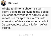 Foto: Simona Gregorcová, ktorá bola prepustená z výkonu Trestu väznica Sučany nám napísala:,, Ahojte tu Simona checem sa vám veľmi pekne poďakovať že ste boli aj v Sučanoch v ženskom oddiely veľkú radsoť ste mi spravili a veľmi rada som vás počuvala ste super a dobre že sa venujete takto väzňom veľká vďaka.“ Simona nás tiež požiadala , či by sme niekedy neprišli zahrať aj na charitu do Čadce, kde teraz funguje. Naša odpoveď bola, že prídeme a Simoninu reakciu (viď foto) nemusím ani prepisovať, je šťastná. A verím tomu, že nielen pre seba, ale aj pre tých, s ktorým sa stretáva na charite, lebo ak človek spozná Božiu lásku, chce ju rozdávať všetkým. Jej skúsenosť, osobný dotyk, zažila tiež pri našich stretnutiach v Sučanoch a my radi prídeme aj k tým, čo sú možno len krôčik od vstupu do väznice.